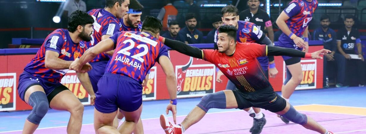 ತ್ಯಾಗರಾಜ ಒಳಾಂಗಣ ಕ್ರೀಡಾಂಗಣದಲ್ಲಿ ಶನಿವಾರ ನಡೆದ ಮೊದಲ ಪಂದ್ಯದಲ್ಲಿ ಬೆಂಗಳೂರು ಬುಲ್ಸ್ ತಂಡ 33-23 ಅಂಕಗಳಿಂದ ದಬಾಂಗ್ ದಿಲ್ಲಿ ತಂಡವನ್ನು ಹಣಿಯಿತು. ಇದರೊಂದಿಗೆ 8ನೇ ಜಯ ಗಳಿಸಿದ ಬುಲ್ಸ್ ಒಟ್ಟು 16 ಅಂಕಗಳನ್ನು ಕಲೆಹಾಕಿ ಅಂಕಪಟ್ಟಿಯಲ್ಲಿ ಅಗ್ರ ಐದರಲ್ಲಿ ಸ್ಥಾನ ಉಳಿಸಿಕೊಂಡಿದೆ.