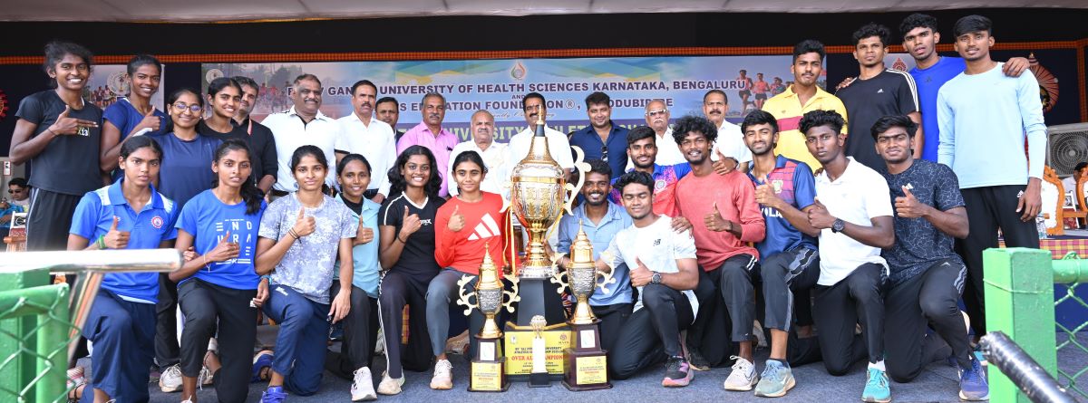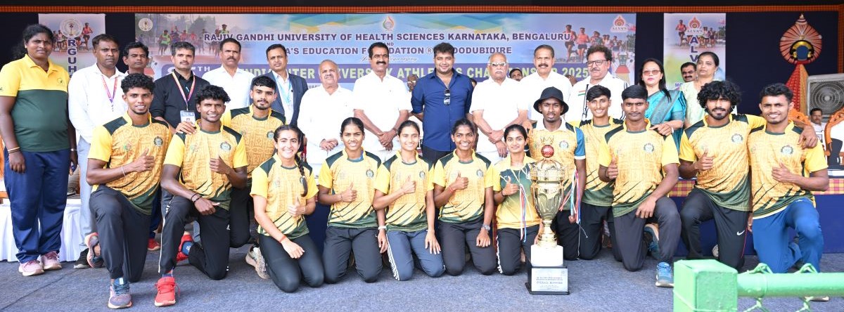 ಮೂಡುಬಿದಿರೆ: ಸತತ ಐದು ದಿನವೂ ಓಟದಲ್ಲಿ ಪಾರಮ್ಯ ಮೆರೆದ ಮದ್ರಾಸ್ ವಿಶ್ವವಿದ್ಯಾಲಯವು 134 ಅಂಕಗಳೊAದಿಗೆ ‘85ನೇ ಅಖಿಲ ಭಾರತ ಅಂತರ ವಿಶ್ವವಿದ್ಯಾಲಯ ಅಥ್ಲೆಟಿಕ್ಸ್ ಚಾಂಪಿಯನ್‌ಶಿಪ್ 2025-26’ರ ಟ್ರೋಫಿಯನ್ನು ಇಲ್ಲಿನ ಸ್ವರಾಜ್ಯ ಮೈದಾನದಲ್ಲಿ ಶುಕ್ರವಾರ ಎತ್ತಿ ಹಿಡಿಯಿತು. ಸ್ಥಳೀಯ ಮಂಗಳೂರು ವಿಶ್ವವಿದ್ಯಾಲಯವು ಎರಡು ವಿಭಾಗದಲ್ಲಿ 109 ಅಂಕಗಳೊಂದಿಗೆ ರನ್ನರ್ ಅಪ್ ಪ್ರಶಸ್ತಿ ಪಡೆಯಿತು. All India Inter University Athletics: Madras University Champion, Mangalore runners up.