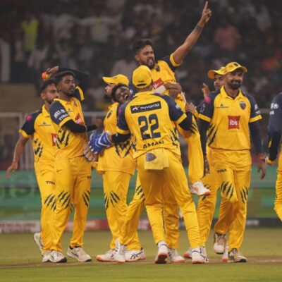 ಸೂರತ್: ಫೈನಲ್ ಪಂದ್ಯದಲ್ಲಿ ಟೈಗರ್ಸ್ ಆಫ್ ಕೋಲ್ಕತಾ ವಿರುದ್ಧ 29 ರನ್ ಅಂತರದಲ್ಲಿ ಜಯ ಗಳಿಸಿದ ಚೆನ್ನೈ ಸಿಂಗಮ್ಸ್ ತಂಡ ಮೂರನೇ ಆವೃತ್ತಿಯ ಇಂಡಿಯನ್ ಸ್ಟ್ರೀಟ್ ಪ್ರೀಮಿಯರ್ ಲೀಗ್ ಚಾಂಪಿಯನ್ ಪಟ್ಟ ಗೆದ್ದುಕೊಂಡಿದೆ. Chennai