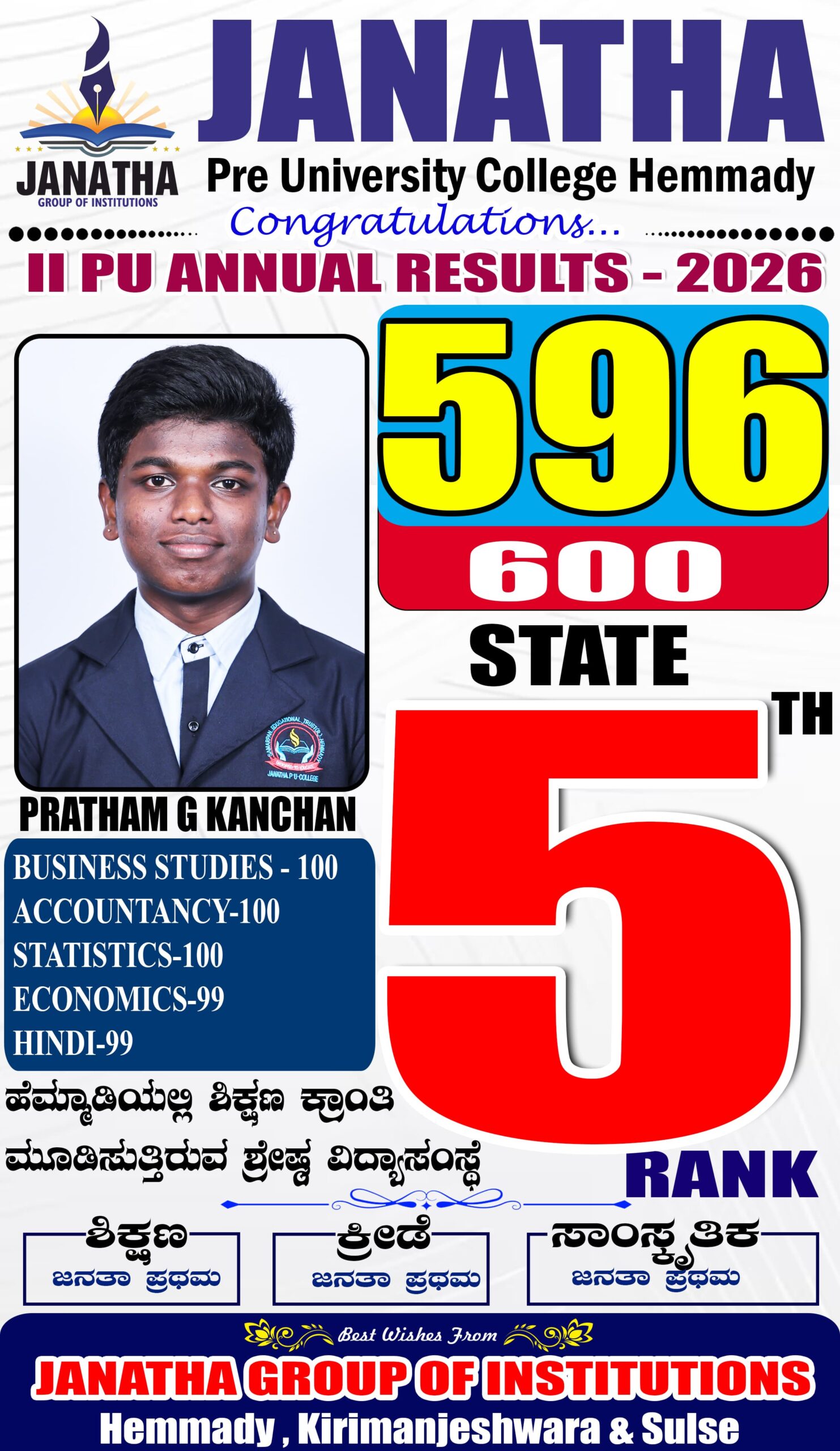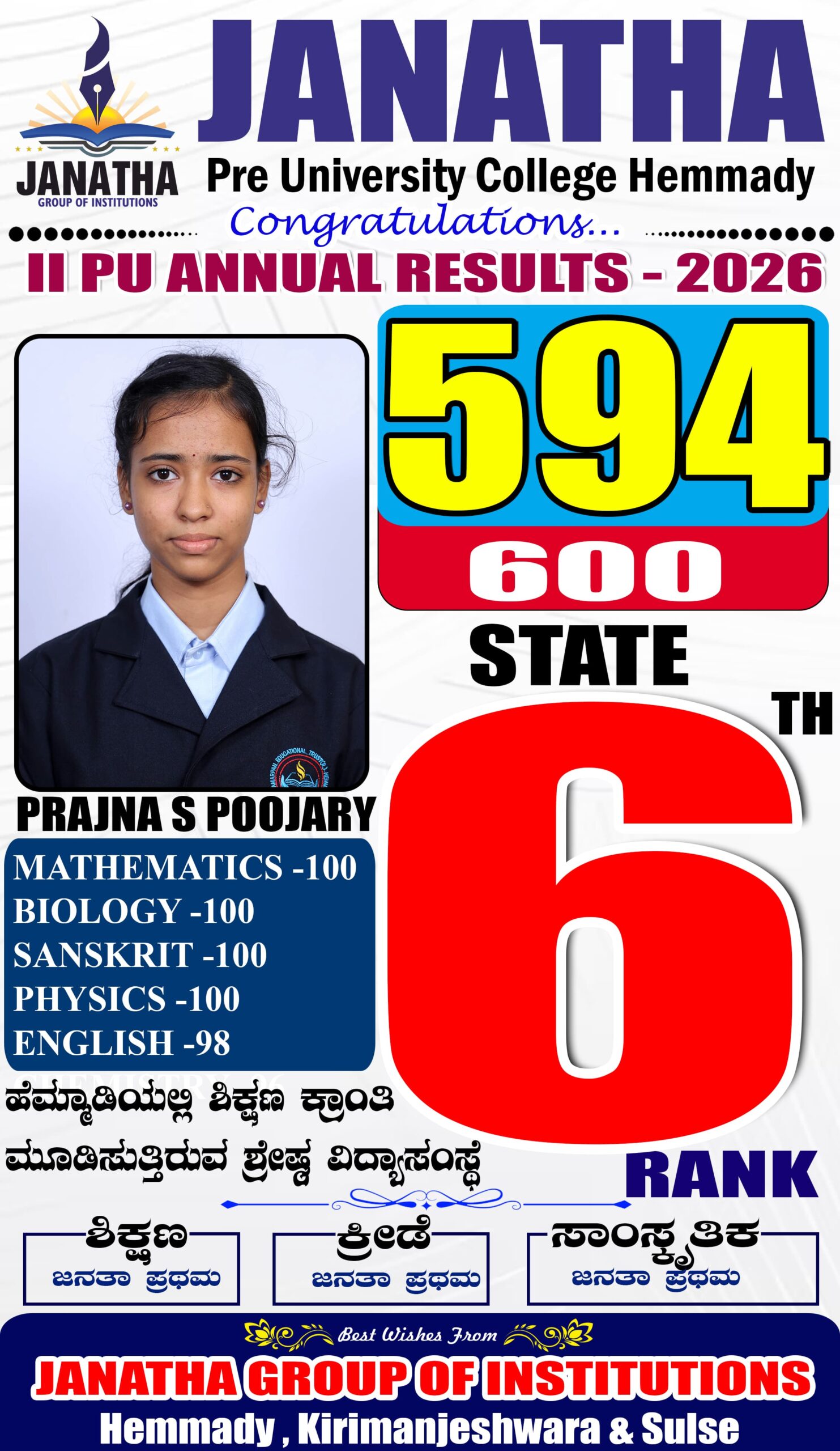 ಜನತಾ ಪಿಯು ಕಾಲೇಜು ರಾಜ್ಯದಲ್ಲೇ ಟಾಪ್ 2
