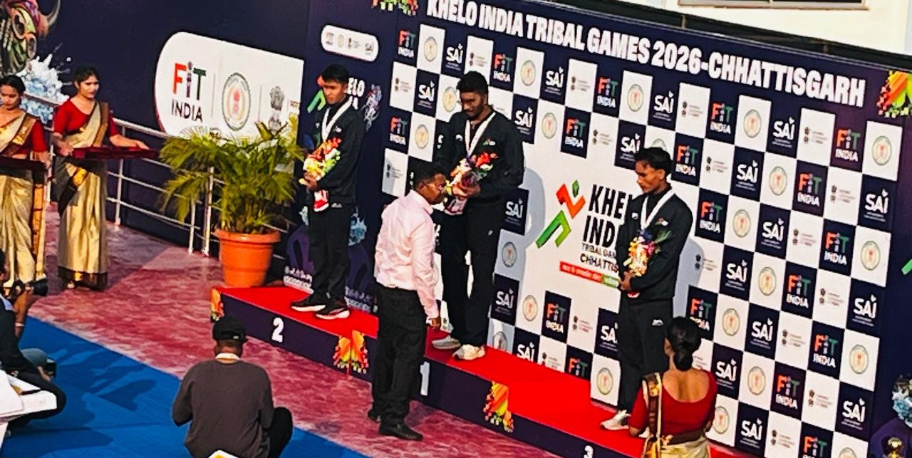 ರಾಯ್ಪುರ: ಖೇಲೋ ಇಂಡಿಯಾ ಟ್ರೈಬಲ್ ಗೇಮ್ಸ್ನ ಮೂರನೇ ದಿನದಂತ್ಯಕ್ಕೆ ಕರ್ನಾಟಕ ಪದಕಗಳ ಪಟ್ಟಿಯಲ್ಲಿ ಅಗ್ರ ಸ್ಥಾನಕ್ಕೇರಿಸಿದರು. ಸತತ ಮೂರನೇ ದಿನದಲ್ಲೂ ಕರ್ನಾಟಕ ಪದಕಗಳ ಪಟ್ಟಿಯಲ್ಲಿ ಅಗ್ರ ಸ್ಥಾನ ಕಾಯ್ದುಕೊಂಡಿದೆ. ಕರ್ನಾಕಟ 13 ಚಿನ್ನದ ಪದಕ ಗೆದ್ದಿದ್ದು ಅದರಲ್ಲಿ ದಾವಣಗೆರೆಯ ಮಣಿಕಂಠ ಒಬ್ಬರೇ 8 ಪದಕಗಳನ್ನು ಗೆದ್ದಿರುವುದು ವಿಶೇಷ. Karnataka continues to top the medal tally for the third consecutive day. Karnataka won 13 gold medals, with Manikanta of Davangere alone winning 8 medals.