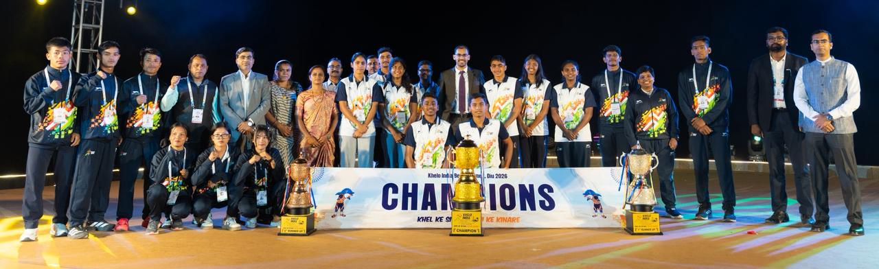 ಡಿಯು: ಶನಿವಾರ ಮುಕ್ತಾಯಗೊಂಡ ಖೇಲೋ ಇಂಡಿಯಾ ಬೀಚ್ ಗೇಮ್ಸ್ನಲ್ಲಿ ಕರ್ನಾಟಕ ರಾಜ್ಯ ಚಾಂಪಿಯನ್ ಪಟ್ಟ ಗೆದ್ದುಕೊಂಡಿದೆ. Karnataka won the Khelo India Beach Games 2026 with 11 medals which included 3 Gold, 2 silver and 6 bronze