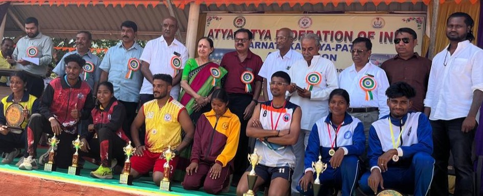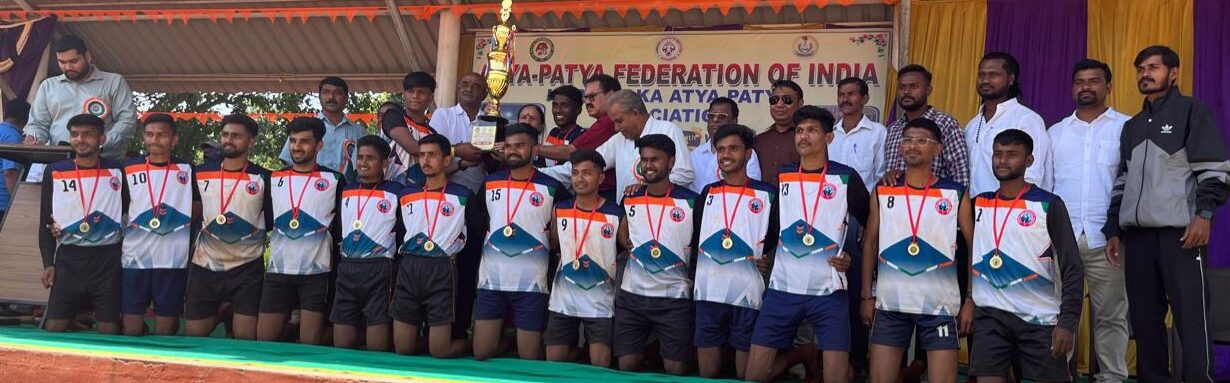 ಬೆಳಗಾವಿ: ಚಂದರಗಿ ಕ್ರೀಡಾ ಶಾಲೆಯ ಆಶ್ರಯದಲ್ಲಿ, ಕರ್ನಾಟಕ ಆಟ್ಯ- ಪಾಟ್ಯ ಅಸೋಸಿಯೇಷನ್ ಹಾಗೂ ಆಟ್ಯ-ಪಾಟ್ಯ ಫೆಡರೇಷನ್ ಆಫ್ ಇಂಡಿಯಾ ನೆರವಿನೊಂದಿಗೆ ನಡೆದ 39ನೇ ಪುರುಷರ ಹಾಗೂ 34ನೇ ವನಿತೆಯರ ರಾಷ್ಟ್ರೀಯ ಆಟ್ಯ-ಪಾಟ್ಯ ಚಾಂಪಿಯನ್ಷಿನ್ ಪುರುಷರ ವಿಭಾಗದಲ್ಲಿ ಮಹಾರಾಷ್ಟ್ರ ಹಾಗೂ ವನಿತೆಯರ ವಿಭಾಗದಲ್ಲಿ ಪುದುಚೇರಿ ತಂಡಗಳು ಪ್ರಶಸ್ತಿ ಗೆದ್ದುಕೊಂಡವು. National Atya-Patya Championship Maharashtra men’s champion and Puducherry women’s champions